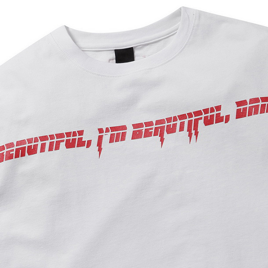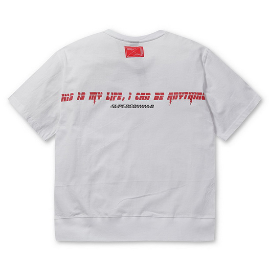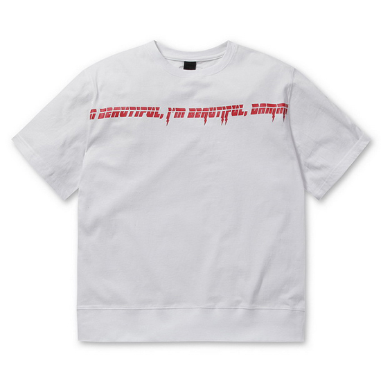 - 번개 타이포 디테일로 포인트를 준 공용 티셔츠.