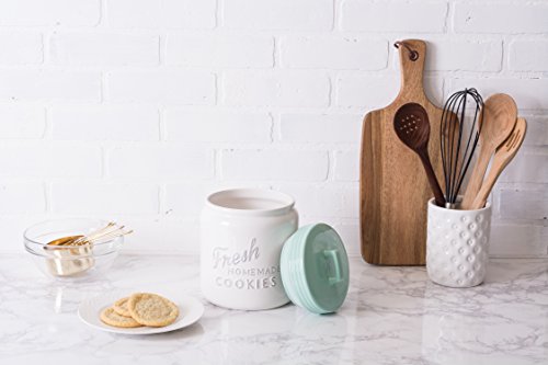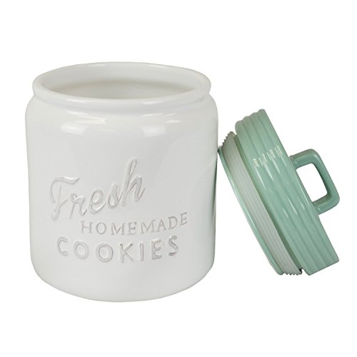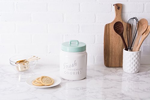 DII Vintage, Retro, Farmhouse Chic Mason Jar Inspired Ceramic Kitchen Canister, Cookie Jar With Airtight Lid For Food Storage, Store Cookies, Crackers, Chips and More - Aqua
