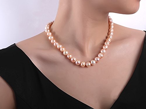 Natural pink pearl necklace made with 9-10mm freshwater pearls, ended with shiny magnetic clasp.