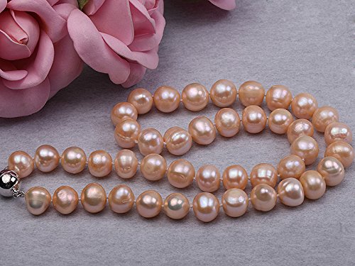 Description *Natural pink pearl necklace made with 10-11mm freshwater pearls, ended with shiny magnetic clasp.