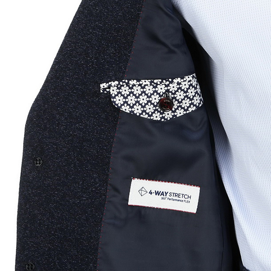 - 믹스 조직 텍스쳐 디자인의 모던한 남성 수트 자켓. - 신축성이 있는 울코튼 소재로 착장감이 우수함. - 기본 라펠 디자인에 SLIM FIT 라인으로 세련됨. - 탈착 가능한 핀데코 장식으로 변형 연출이 용이함. - 가슴판의 웰트 포켓 디테일로 클래식한 멋을 더했음. - 포켓 부분의 패턴 행커치프를 적용하여 포인트를 줌. - 사이드 플랩,인 포켓 디테일로 수납성을 더해줌. - 등판 밑단의 사이드 벤트를 적용하여 활동성을 전해줌. - 같은 디자인의 수트 팬츠와 SET 착장시, 멋스러운 수트룩을 완성시켜줌. - 편안한 착장감, 세련된 핏, 뛰어난 신축성, 활동적인 입체 재단을 적용한 4WAY suit 라인의 아이템. * 판매원: 코오롱인더스트리(주)FnC부문 * 원산지: 필리핀