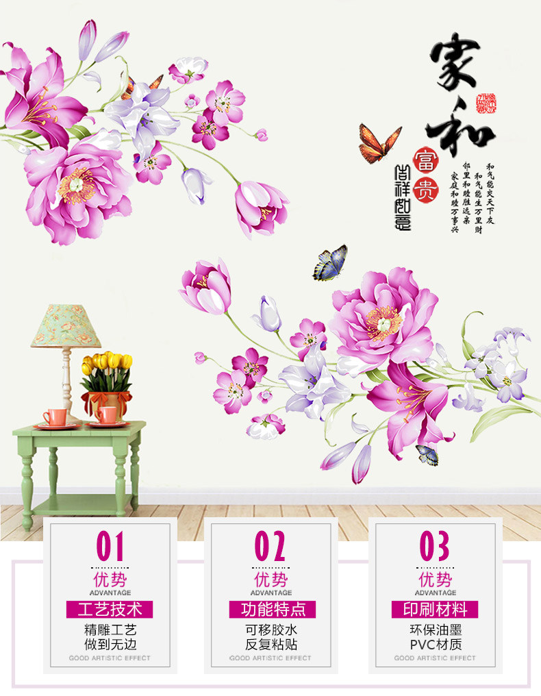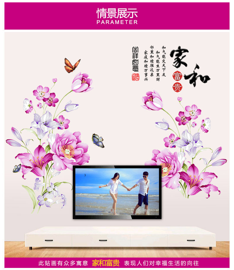 浪漫壁画贴纸贴纸可移除自粘卧室温馨书房客厅装饰品背景墙贴画