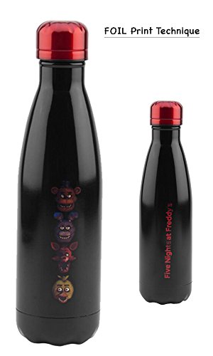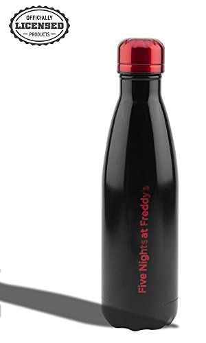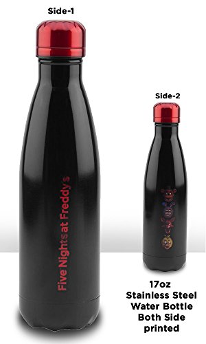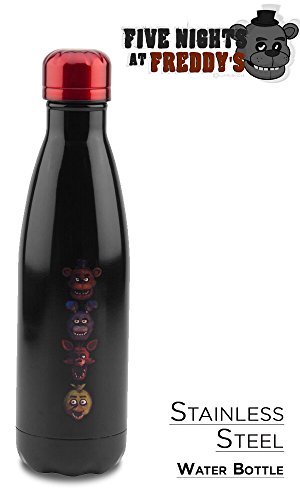 Steam OFFICIAL Five Nights at Freddy's FNaF with Freddy Fazbear, Bonnie, Foxy and Chica Black Steel PREMIUM Sports & Fitness Training Water Bottle, 17oz Black