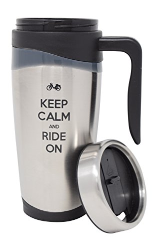 Suck Up Gifts Keep Calm and Ride On Motorcycle Stainless Steel 16 Oz Travel Tumbler Mug (Gray)