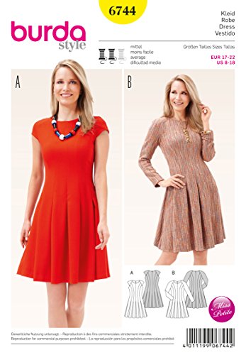 -. Title : Burda Misses' Dress with Swingy Skirt, Sewing pattern, 6744
