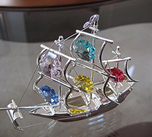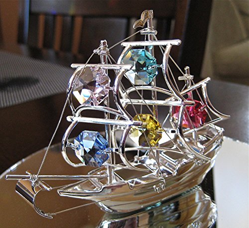 Sailing Ship Silver Plated Swarovski Crystal Ornament