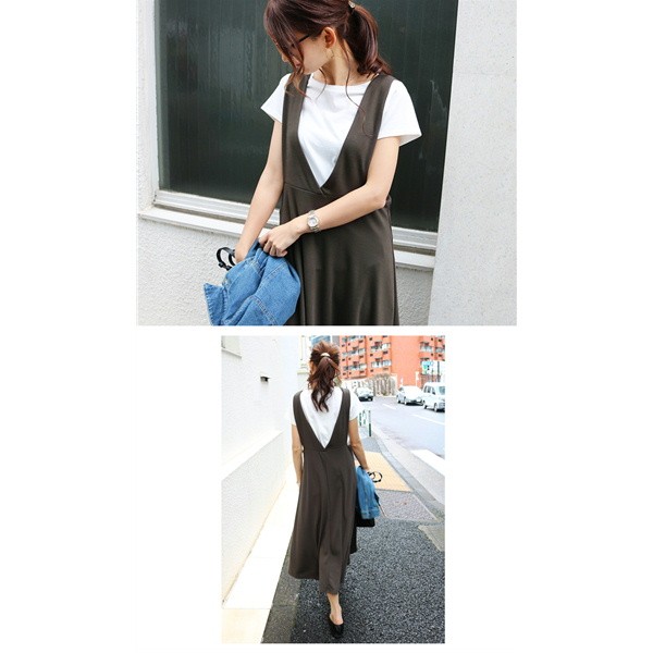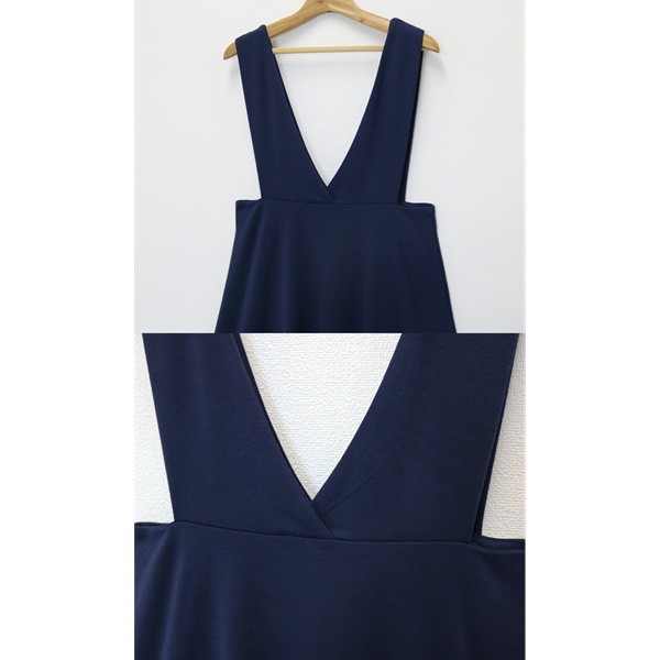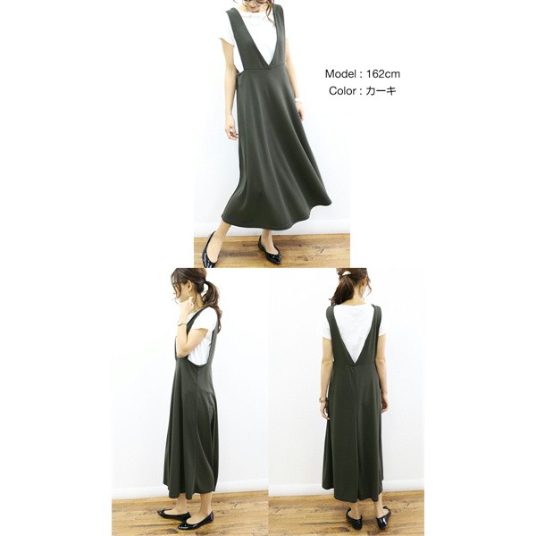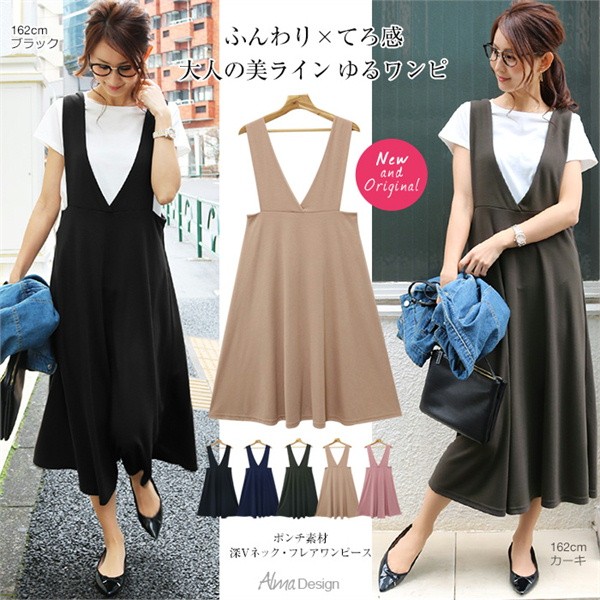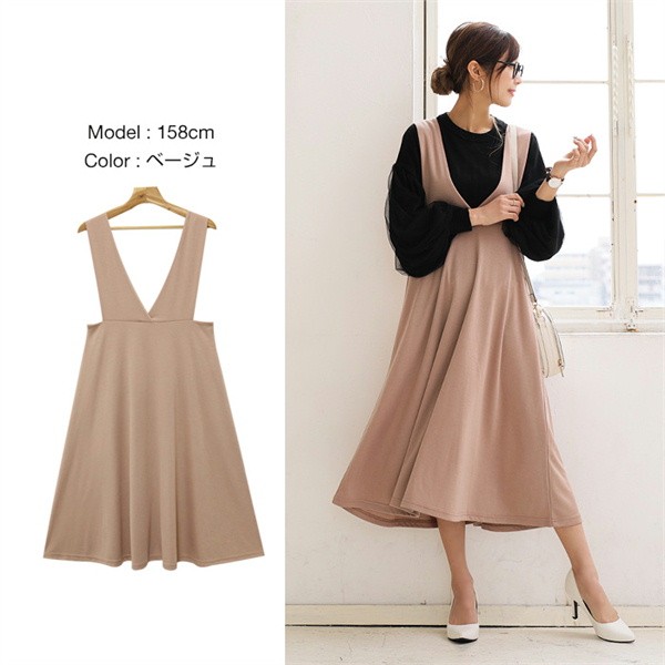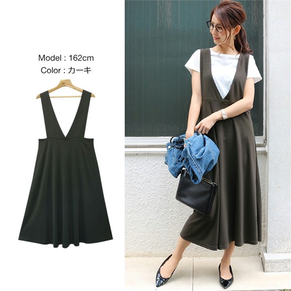★ふんわり柔らか!フレアラインがキレイにでるVネックワンピース★ボタンやジップ無しでスポッと着られる楽ちんワンピース!伸縮性のあるやや薄手の生地で動きやすい1枚!インナーは、Tシャツやカットソー、ブラウスなどをインすれば大人カワイイコーデの誕生!お腹周りの締め付けが少ないのでマタニティウェアとしても活用できます。▼サイズ▼ Mサイズ:着丈:110.5cm ウエスト:39cm 裾幅:105cm ストラップ長さ:32cm▼素材▼ポリエステル65% レーヨン35%※伸縮性:あり 透け感:なし 生地の厚さ:やや薄手※注意事項※ 商品画像はできる限り実物の色に近づけておりますが、モニター・ パソコン等の画像解像度により実際の商品と多少色味が異なる場合 がございます。 色味が異なる等のクレームはお受けできませんのでご了承ください。 海外・機械による生産のため、生地の継ぎ目に若干のズレや多少の ほつれによる形やサイズに多少の誤差が生じる場合がございます。 また、混紡繊維によって生地の織りに他繊維が混紡している場合も ございますが品質上の問題はございません。 予めご了承くださいますようお願いいたします。