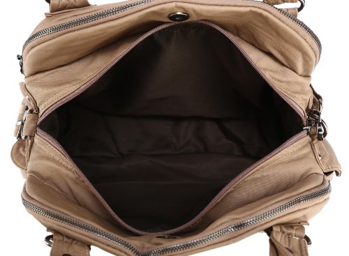 -. Brand : Scarleton -. ClothingSize : 15"x12.5"x6". -. Department : womens -. Feature : Ultra soft synthetic leather with fabric lining. Modern silver hardware. Top magnetic and zipper closures. / Removable shoulder strap drops 21". / Two large interior compartments, one with a cell phone pocket and the other with a small zipper pocket. Two exterior zipper pockets. / Comfortably holds an iPad, iPad Mini, other tablet or a laptop 11.6" and under. / Size: 15"x12.5"x6" -. ProductGroup : Shoes -. ProductTypeName : HANDBAG -. Size : 15"x12.5"x6". -. Title : Scarleton 3 Compartment Washed Shoulder Bag H1340