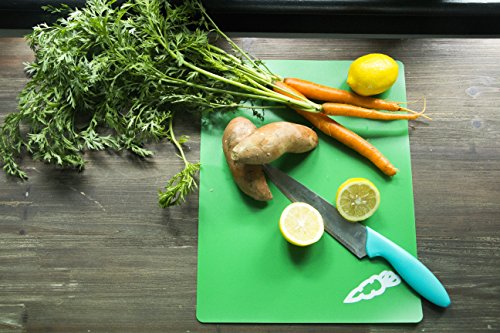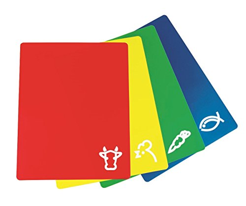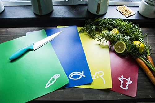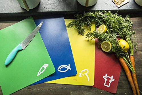 Bahoki Essentials 4-Piece Plastic Cutting Board Mat Set with Food Icons (Red, Blue, Green and Yellow)