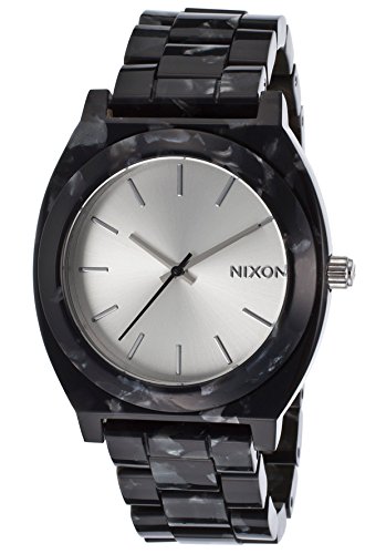 A glossy tortoiseshell finish adds timeless appeal to this Nixon watch. Sleek marks and logo lettering accent the dial. Hinged-snap clasp. Extra links included.