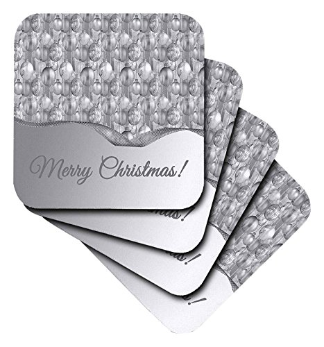3dRose Pretty Silver Christmas Ornaments, Merry Christmas - Soft Coasters, Set of 8 (cst_220561_2)