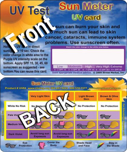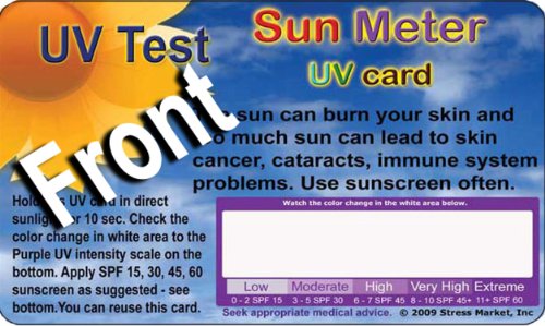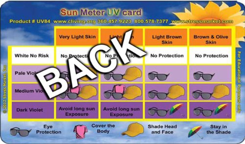 Sun Meter UV card measures the intensity of the UV rays that burn your skin. UV burns can cause skin cancer and other illness.