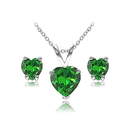 Sterling Silver Created or Simulated Gemstone Heart Solitaire Necklace and Stud Earrings Set