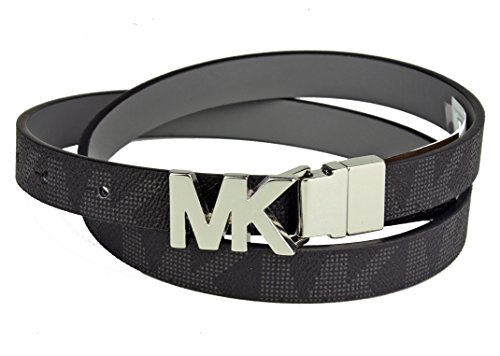 Product DescriptionMichael Kors Womens Skinny With Silver MK Logo Reversible Belt Black/Grey Size Medium0