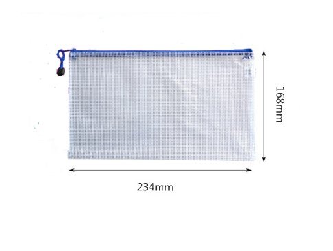 -. Feature : Package included 10pcs. / Product Name : Files Bag; Fit Paper : A5 Paper / External Size : 23.4 x 16.8cm / 9.2" x 6.6"(L*W),Color : White. / Design : Zipper Closure; Material : Soft Plastic. / For schools, businesses, units and other places use