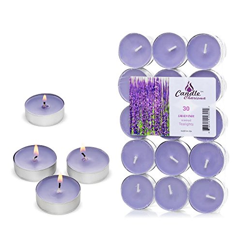 Candle Charisma Tealights Lavender Scented Candles - 30 Pack - Made in USA (Purple Lavender)
