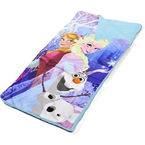 Studio : Idea Nuova Publisher : Idea Nuova Product Description Kids travel is fun with Disney's Olaf sleeping bag and cuddle pillow. Wrap and store the zip up slumber sack for kids school. Velcro straps keep the bag secure. Your toddler will stay warm and cozy with this durable bedding accessory set. Colorful Frozen movie graphics and super soft plush 100% polyester. Made for child indoor home and play room use. Machine washable. Ages 3 years and up. 0