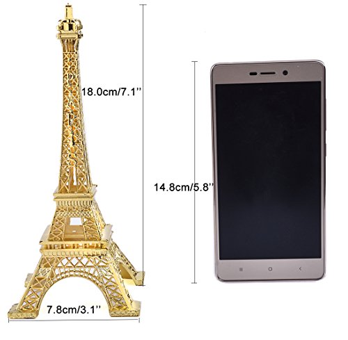 Eiffel Tower Decor,JoyFamily 7Inch (18cm) Metal Paris Eiffel Tower Statue Figurine Replica Drawing Room Table Decor Jewelry Stand Holder for Cake Topper,Gifts,Party And Home Decoration (Gold)