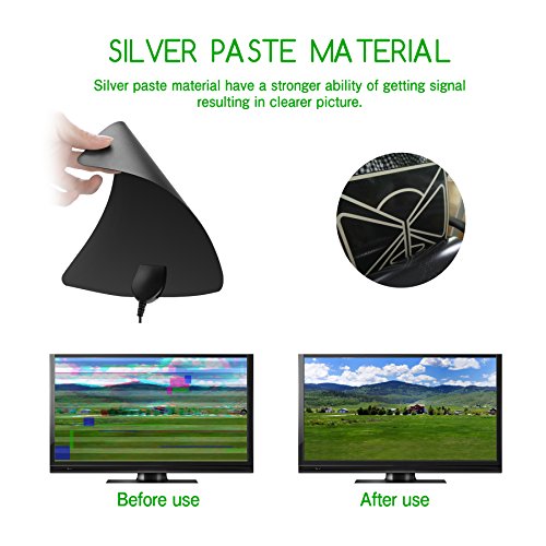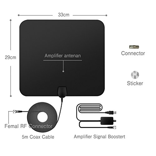 Studio : KIROBO Publisher : KIROBO Binding : Electronics Product Description CHARACTERISTIC: - Detachable Amplifier - Modeled after a discrete mud flap antenna designed for the U.S. Military - Most reliable and innovative antenna on the market today - Reversible and paintable to match decor - Easy to install - Original amplified paper-thin antenna - 5-metre long cable included - Multi-directional: No "pointing" needed - 50-mile range - 1-year part and labor warranty - includes a suede fabric for TV Three Step Installation: Step 1:Place the Aerial in an area with maximize signal strength Step 2:Connect the aerial directly to HDTV's with HD tuners or through a set-top box for TVs without HD turns Step 3:Scan for channels and access all your favorite local and national programming completely for Free!! ?There are so many factors that play into broadcast signal reception that the best place for your antenna might be the last place you'd think to put it. With that said, we do have some general guidelines to offer: Near the side of the residence closest to the broadcast towers?- Generally, you should be better off trying to capture a direct signal rather than one reflected off your neighbor's house. In a window?- The portion without the metal screen tends to work best. High on a wall?- Conventional wisdom suggests higher is better. Behind the TV?- If you've got no problems pulling in reception, a tiny antenna like the Mohu Metro or HD Frequency Mini can be hidden right behind a TV. We've gotten better results placing the antenna toward the top of the TV rather than the bottom,?where the TV's electronics tend to live. Package Included: 1 x HDTV Antenna with 13ft coaxial cable 1 x Amplifier 1 x Instructional Manual 2 x 3M Stickers 1 x Suede Fabric WE TAKE FULL RESPONSIBILITY OF YOUR TOTAL SATISFACTION! 0