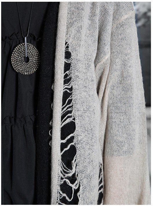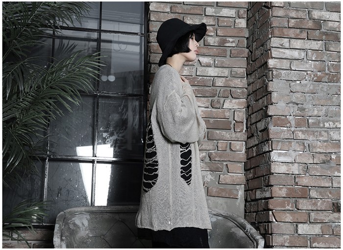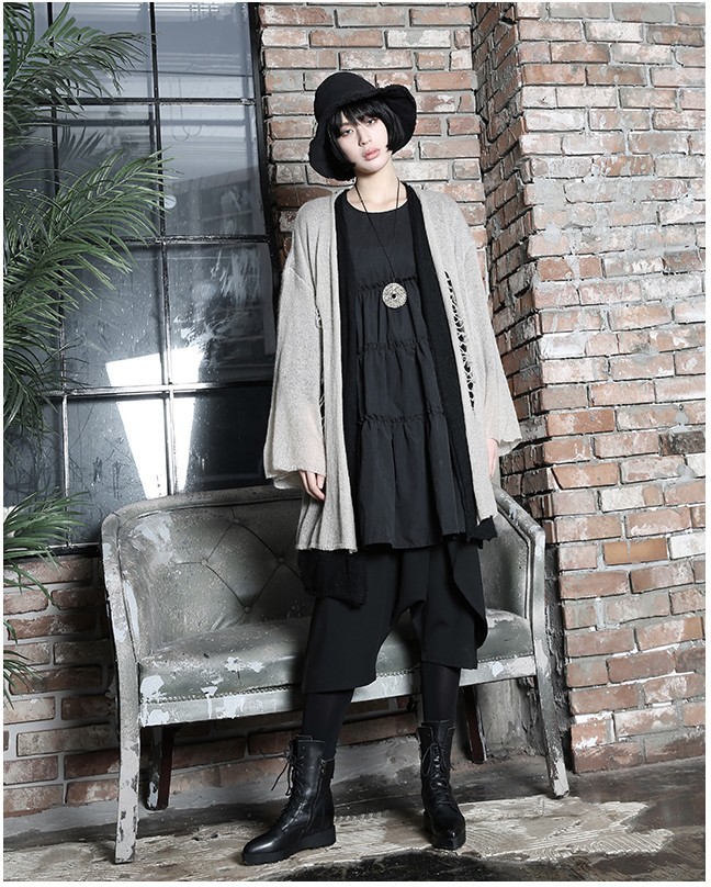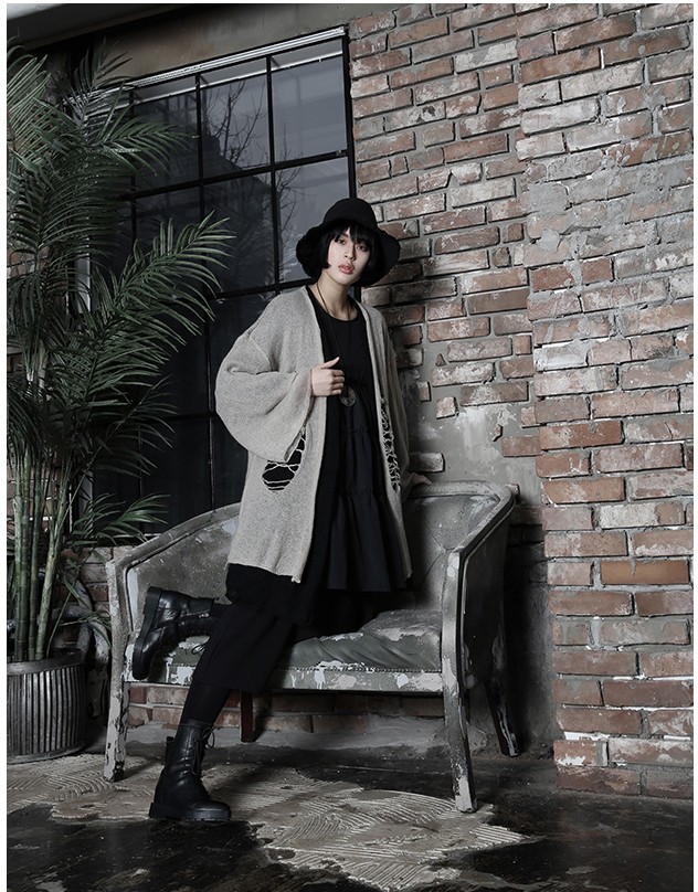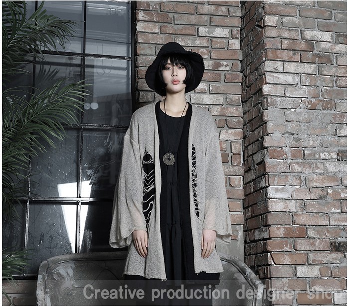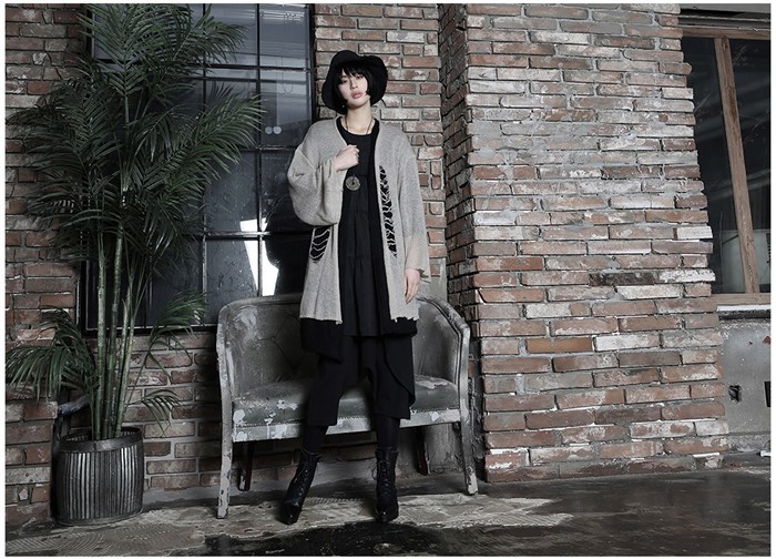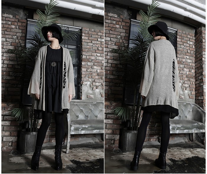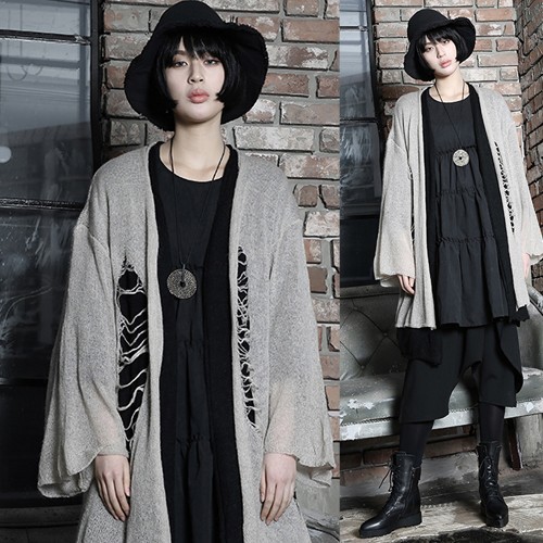 商品名:カーディガン レディース ニットカーディガン ダメージ ロング丈 個性的 秋 冬 2017 モード系 個性的 40代 ファッション