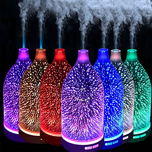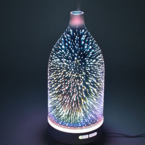- 【UNIQUE 3D LIGHTENING EFFECT WITH 14 COLORS CHANGE】:Essential Oil Diffuser is glass plus coated mirror-made,3D unique fireworks pattern,exquisite vase outlook with 14 color changing will highlight your household decoration,combination of texture and elegant, featuring natural eco- friendly,BPA free materials,also,you could use it as a night light or feature light in a kid's room.