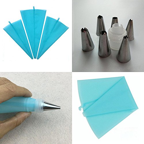Cream Cake Decorating Tools Set Kit Included:3 reusable silicone pastry bag, 1 reusable plastic couplers, couplers are easy to switch quickly from one tip to another tip,3 stainless steel nozzle.With which you can create all types of patterns on cake.