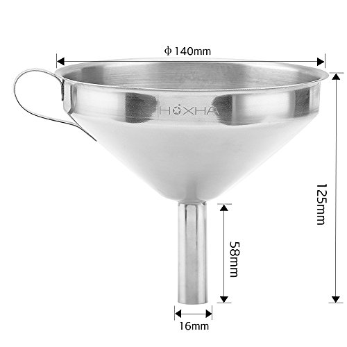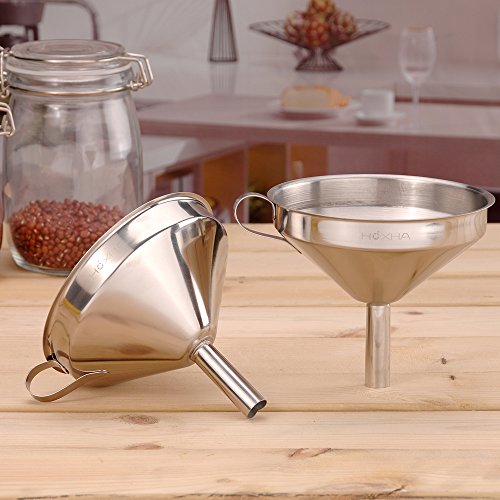 - STAINLESS STEEL FUNNEL - HOXHA's metal funnel is made from food grade stainless steel that not only gives the products a bright, clean finish, it also makes them durable through years of use. Thanks to high-quality materials, you can count on these funnels to deliver long-term performance and decades of convenient pouring. Make sure you have a mini funnel that will last with this fantastic set and the kitchen will be making great meals for everyone!