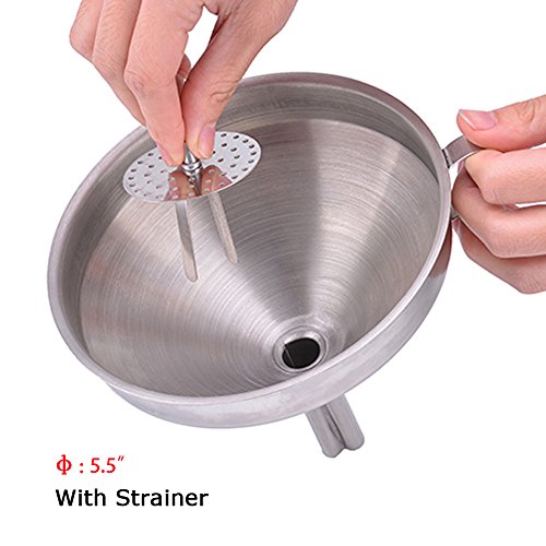 - FUNNEL WITH STRAINER - A detachable strainer is also included in order to filter solid from liquids just like that. Just place the strainer in the funnel during the filtering process and get ready to be amazed. A small yet might tool for filtering larger solids as wellnow there's nothing you can’t filter!