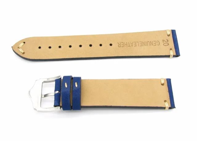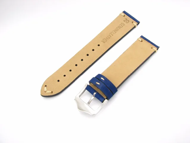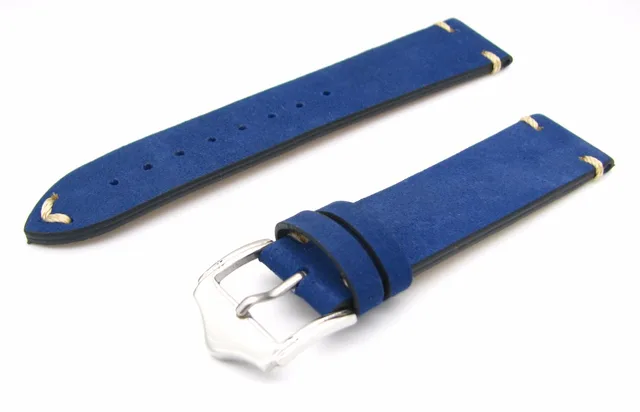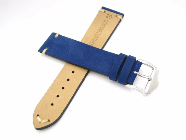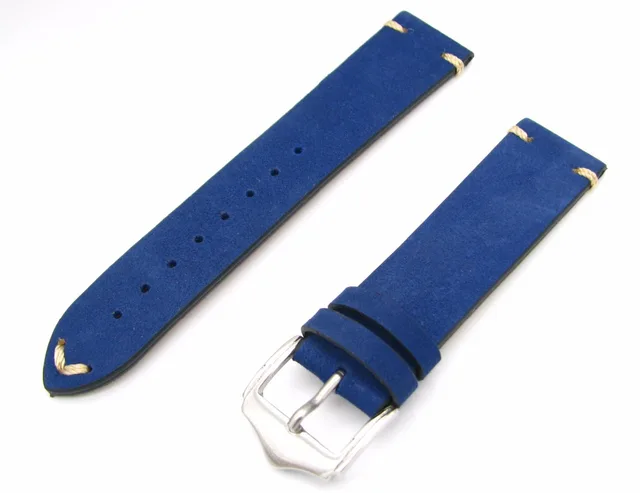 | [해외] 20 22 미리메터 남성 여성 정품 소 가죽 스웨이드 가죽 수제 스티치 블루 럭셔리 시계 줄 스트랩 벨트 실버 광택 핀 버클 |