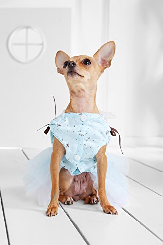 -. Feature : Tutu dress for Chihuahuas, Pom Poms, Yorkies, Silkies, Dachshunds, Jack Russel, Frenchies, Corgis, Beagles, other small dogs and puppies. Features subtle floral pattern, ribbon bows, pleated details, a tutu skirt made of four layers of organza. / The bodice is crafted from woven cotton fabric, durable and breathable, with no stretch. Snap closure makes it easy to dress and undress your pet. Can be hand washed. / Safe for your pet. Design and all materials are approved by pet health professionals and recommended to dog owners. Our clothes don't restrict movement or cause allergic reactions.