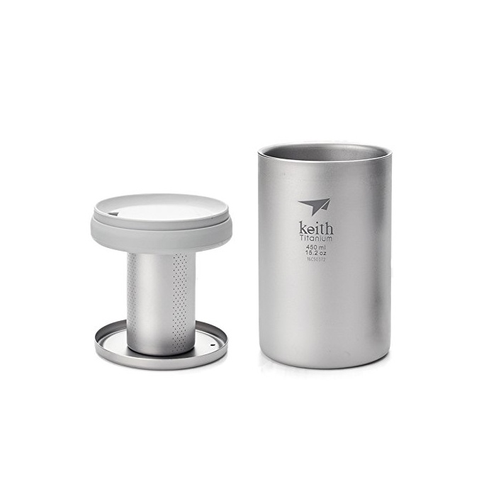 Keith 450ml 초경량 아웃도어2층 티타늄(티탄) 컵 캠프 보온병 더블 wall 차를 거르는 쇠조리 포터블인 다기능 다기