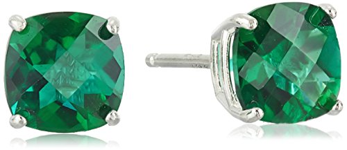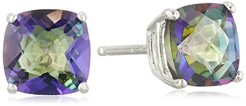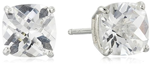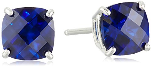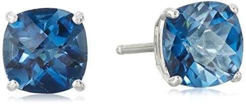 Sterling Silver Cushion Checkerboard Cut London Blue Topaz Stud Earrings (6mm)