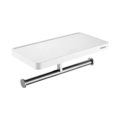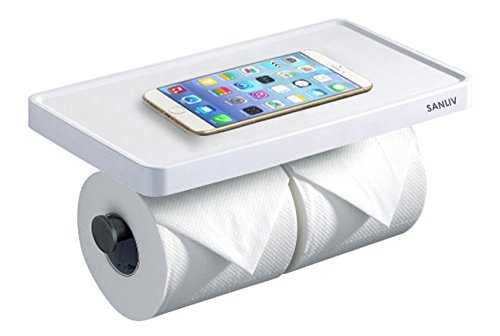 Sanliv Double Roll Toilet Paper Holder with Storage Shelf - White