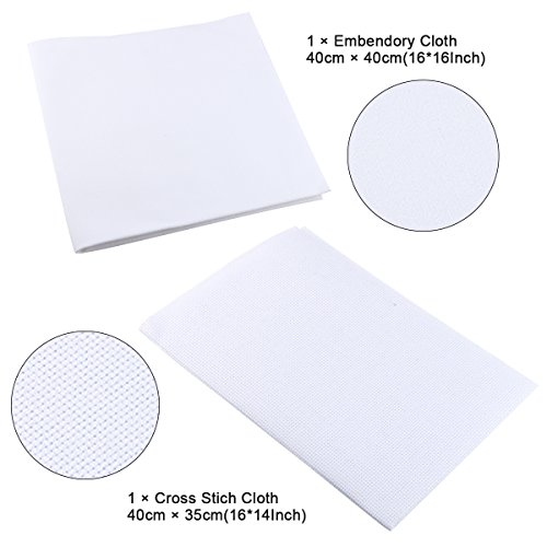 - 2PCS embendory cloth: 1 x 14 count white cotton classic reserve aida(14*16 Inch), 1 x cotton embendory cloth (16*16 Inch)