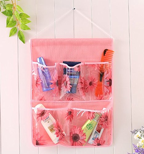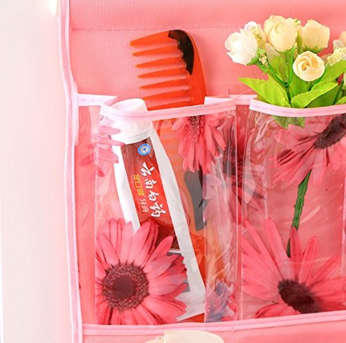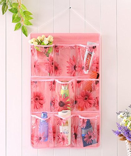 HappyDaily Pack of 2 Fashion Hanging Organizer, Great Closet organizer and shower organizer (5 Pockets+9 Pockets, Pink Daisy)