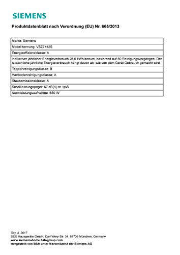 Beste Reinigungsklasse auf Hartboden ** Beste Reinigungsklasse auf Hartboden (Klasse A laut Energie-Label (EU No. 665/2013))