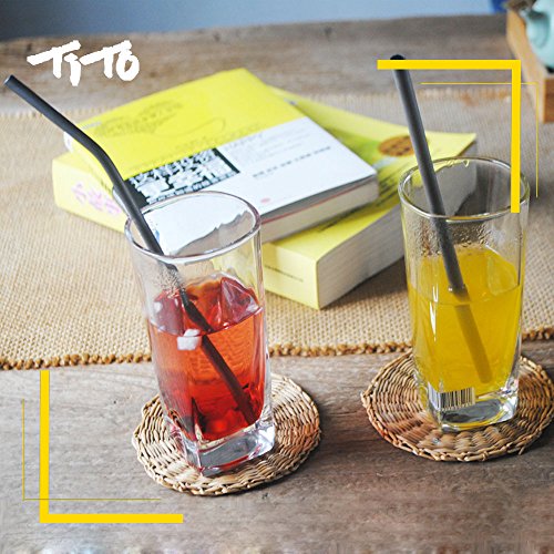 TiTo Titanium straw supper strong and ultralight Drinking straw with cleaning brush Dia 7mm X 0.4mm with bent and straight two shape (pack of 2) (2 straight)