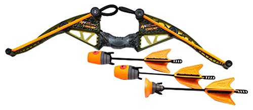 Air Hunterz Z Curve Bow in a frustration free package Z- Curve Bow is the ultimate foam bow and arrow combo. Watch as the arrow soars over 125' Shoot arrows over 125 feet.-Left or right handed.-Stick anywhere zartz arrow, bounce back action arrows.-Ages 8+. Includes: -Includes bow, two red X long range arrows one arrow zartz and zip clip to hold arrows. Disclaimer: -Warning: Do not aim at eyes or face, do not aim or shoot at people or animals.Feature