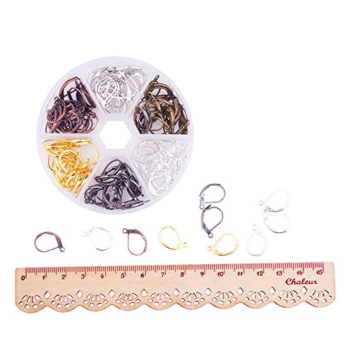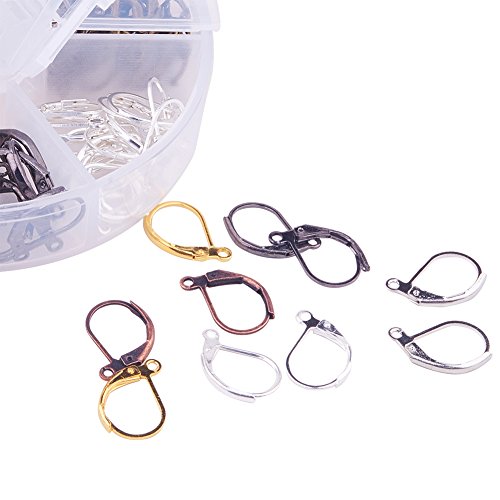 Pandahall 1 Box 120pcs Mixed 6 Colors 15mm Brass Earring Components Lever Back Hoop Earrings for Jewelry Making Findings