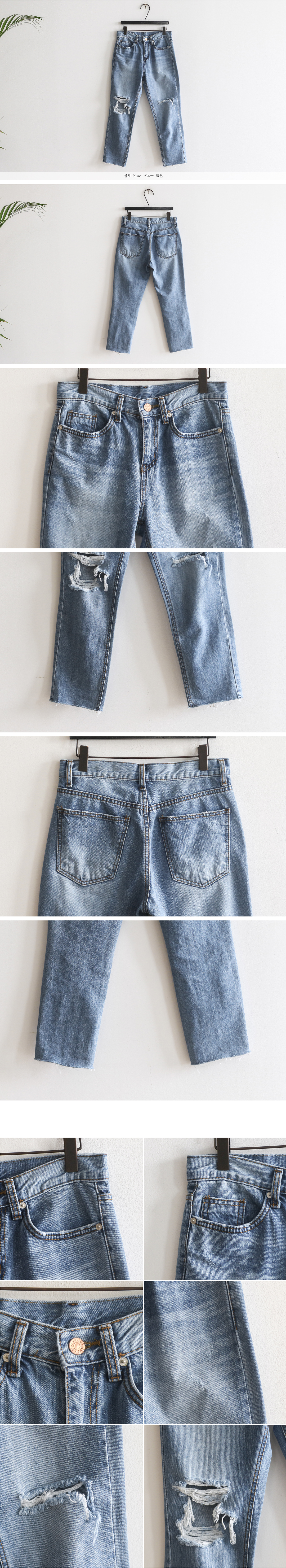 데일리로 즐기기 좋은 데님팬츠 소개해드릴께요.자연스럽게 워싱된 빈티지한 중청컬러가 눈길을 사로잡는 아이템인데요.양쪽 무릎부분에 과감하게 컷팅 디테일을 주고 밑단에 올풀림을 주어더욱 캐주얼하고 빈티지한 멋을 느끼실 수 있습니다.여유롭게 착용하면 더욱 예쁜 스타일로신축성은 없지만 편안한 착용감을 느끼실 수 있구요.부담없이 댜앙한 스타일에 두루두루 매치하기 좋아 자주 손이가게 되는 아이템이랍니다.