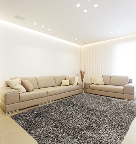 Sultansville Colorville Collection CVL-DG-57 Dark Grey High-Pile Soft Shag Area Rug, 5 feet 3 inches by 7 feet 2 inches (5'3"x 7'2")