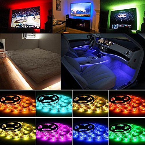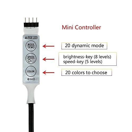 JaymeDirect USB Powered Led Strip Light kits,1m(3.28ft) RGB LED Strip Backlight with Mini-controller in Line, Multi-Color Changing Suitable For Flat Screen TV, Desktop PC, Neon Sign Decoration