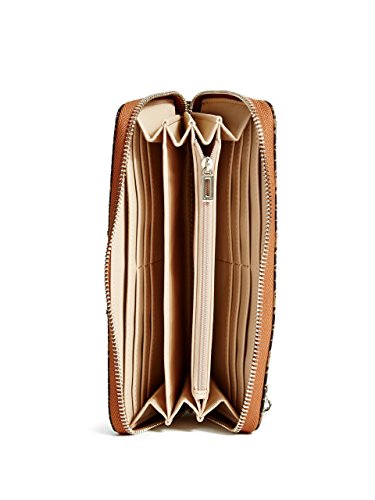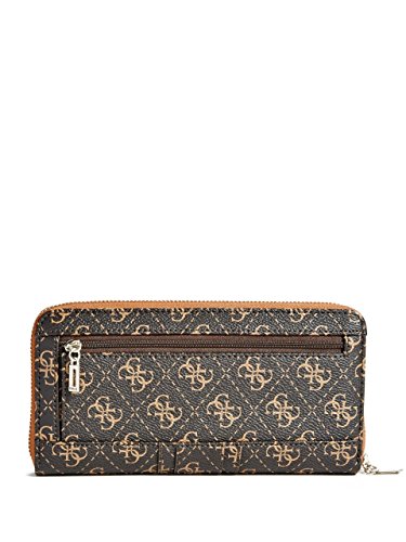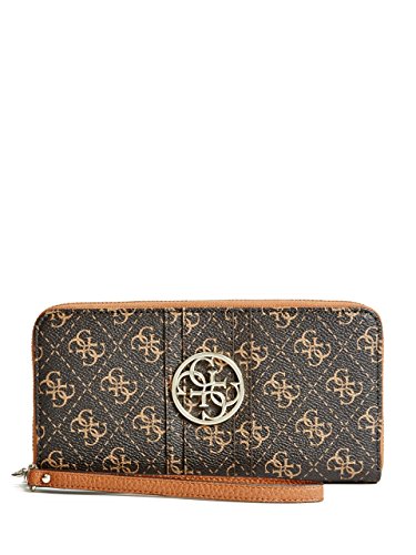 -. Brand : GUESS -. Color : Brown -. Department : womens -. Feature : 4G logo embossed faux leather accented with gold-tone hardware / 4G logo plaque on front; Center zipper detail; Detachable hand strap / Zip-around closure, divided interior with 8 credit card slots and 2 bill pockets / Back zipper pockets for extra storage / Measurements: L 8" x H 4" x W 1" -. ProductGroup : Shoes -. ProductTypeName : HANDBAG -. Title : GUESS Lena Quattro G Zip-Around Wristlet Wallet Clutch Bag