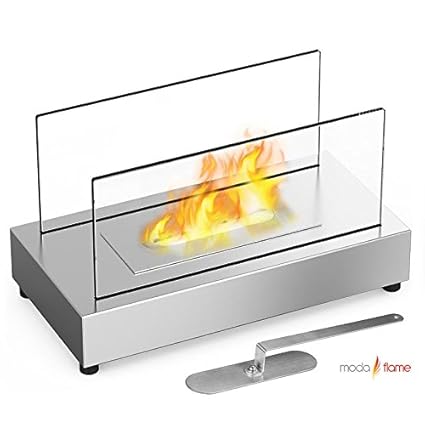 - This portable tabletop firepit fireplace requires no electric, gas, chimney or gel cans. Burns Moda Flame ventless ethanol fuel.