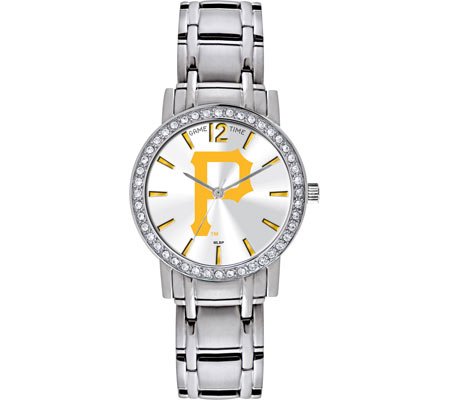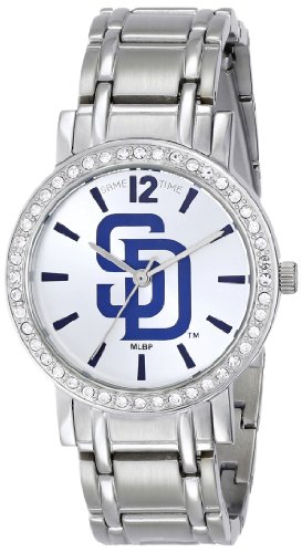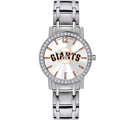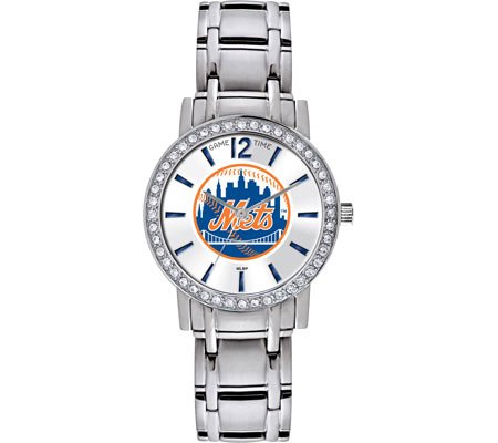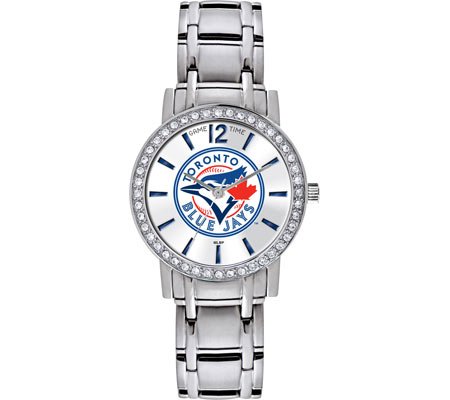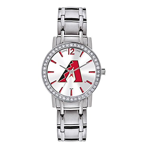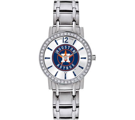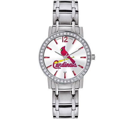 Women's Game Time MLB All Star Watch. A stylish way to show your around-the-clock support! For fans like you, there is no off-season. Features a stainless steel band complete with a crystal stone bezel framing your favorite baseball team's logo. With this Game Time MLB All Star Watch you'll look great on any occasion from game day to date night. Features: All stainless steel construction; Metal case with crystal stones look stylish; Sunray dial; Japanese quartz movement for precise timekeeping; Officially licensed team logo and colors; Water resistant down to 99'; Case size: 32mm. State Team. Order yours today! Women's Game Time MLB All Star Watch