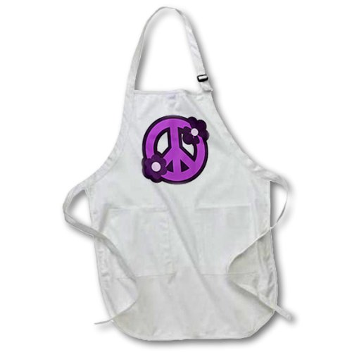 3dRose apr_124607_1 Purple Peace Sign with Purple Flowers Full Length Apron with Pockets, 22 by 30", White