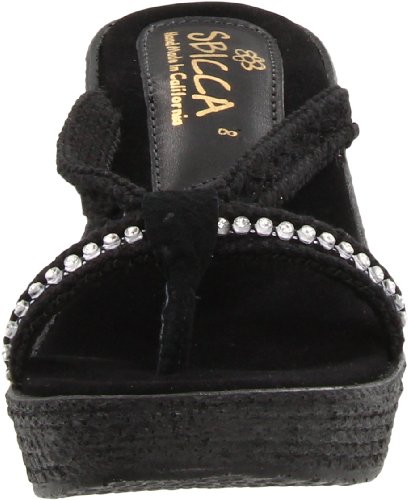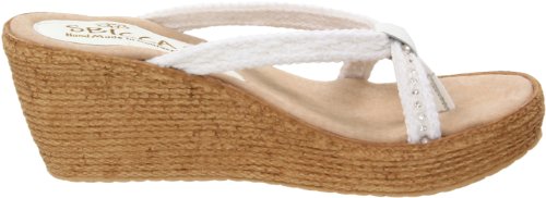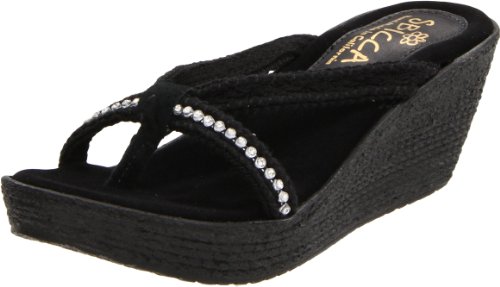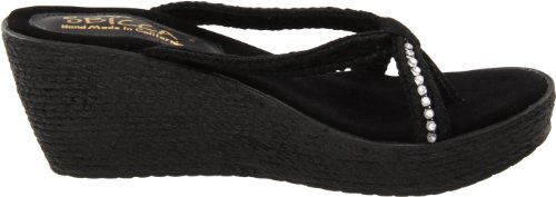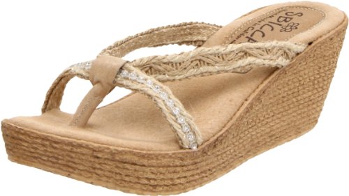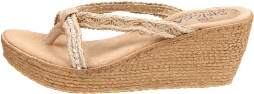 Product DescriptionWeaved fabric upper with sparkling rhinestones throughout. Man-made lining. Lightly cushioned man-made footbed. Wrapped platform and wedge heel. Man-made sole.0