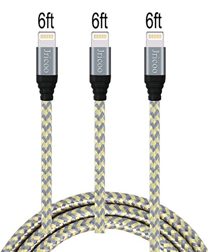 Studio : Jricoo Publisher : Jricoo Binding : Wireless Phone Accessory Product Description Designed for iPhone 8/8P/X,iPhone 7,iPhone 7Plus iPhone 6s,6s Plus, 6c, 6, 6 Plus iPhone 5, 5s, 5c iPad 4th Generation, iPad Air, iPad Air 2, iPad mini, 2, 3, iPod touch 5th Generation, iPod Nano 7th Generation. Supports latest iOS Version. Incredibly Strong: this Jricoo lightning cable features a unique high tensile nylon construction making it superior durability and adding a bit to its flexibility. Firmly fixed into the aluminum alloy collar, the lightning connector will hardly be broken off. High Performance: High-quality copper wire maximizes signal quality and increases durability. Durable hi-speed braided lightning 8-pin to USB sync and charge cable cord. The 8pin ultra-compact connector head is small enough to fit most iPhone cases but strong enough to withstand repeated unplugging and storage. Perfect Length and Great Color: You can enjoy 3pcs 6ft sync and nylon braided charging cables in this package. Gold mixed gray color is distinguish with the common colors. Policy Warranty One Year Quality guaranteed. Please contact us freely if our product does not meet your expectations.We hope to give you a 100% satisfaction purchase experience. 0