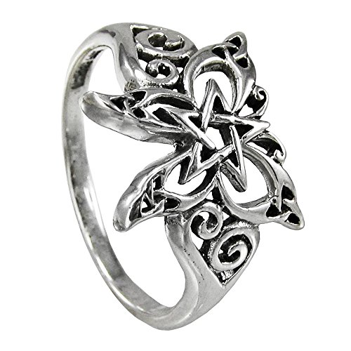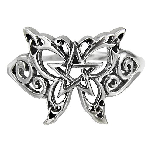 -. Binding : Jewelry -. Brand : Dryad Design -. Department : womens -. Feature : Made of .925 pure sterling silver / Available in sizes 4-15 / Ring band measures 1.3 cm at widest point / An original design by Paul Borda of Dryad Design / Ring exchanges are available if you need to swap a size -. Model : DD-TRI-276 -. MPN : DD-TRI-276 -. PartNumber : DD-TRI-276 -. ProductGroup : Jewelry -. ProductTypeName : FASHIONRING -. Title : Sterling Silver Butterfly Pentacle Wiccan Pagan Pentagram ring jewelry (sz 4-15)