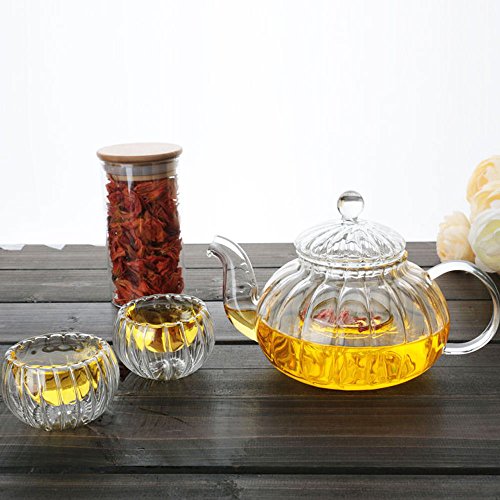 lifelj유리 티 포트 내열성Pumpkin셰이프 유리 티 포트 차 커피Pot with Infuser필터600ml
